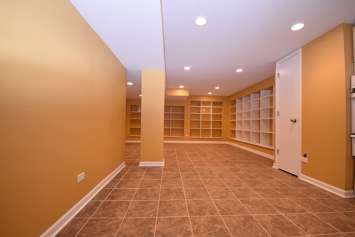 Recessed lighting was carefully installed to brighten the space and highlight the shelving units. This improved the overall ambiance and made the room feel larger and more inviting.