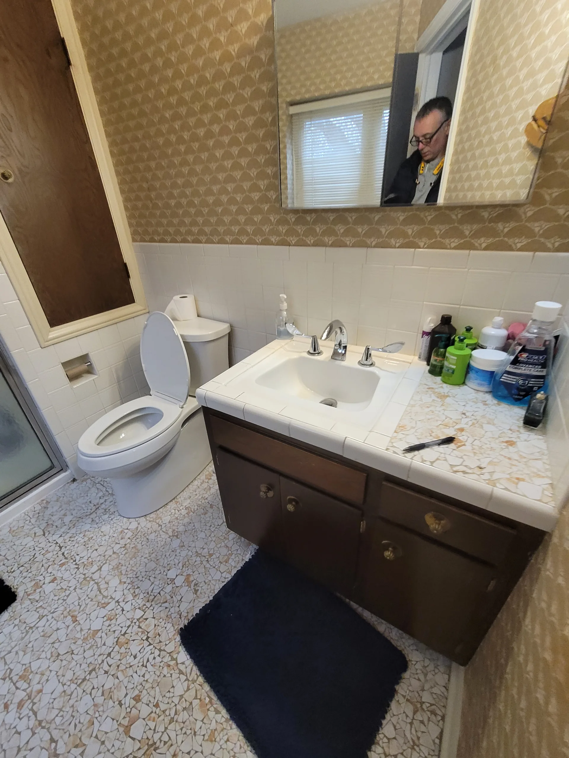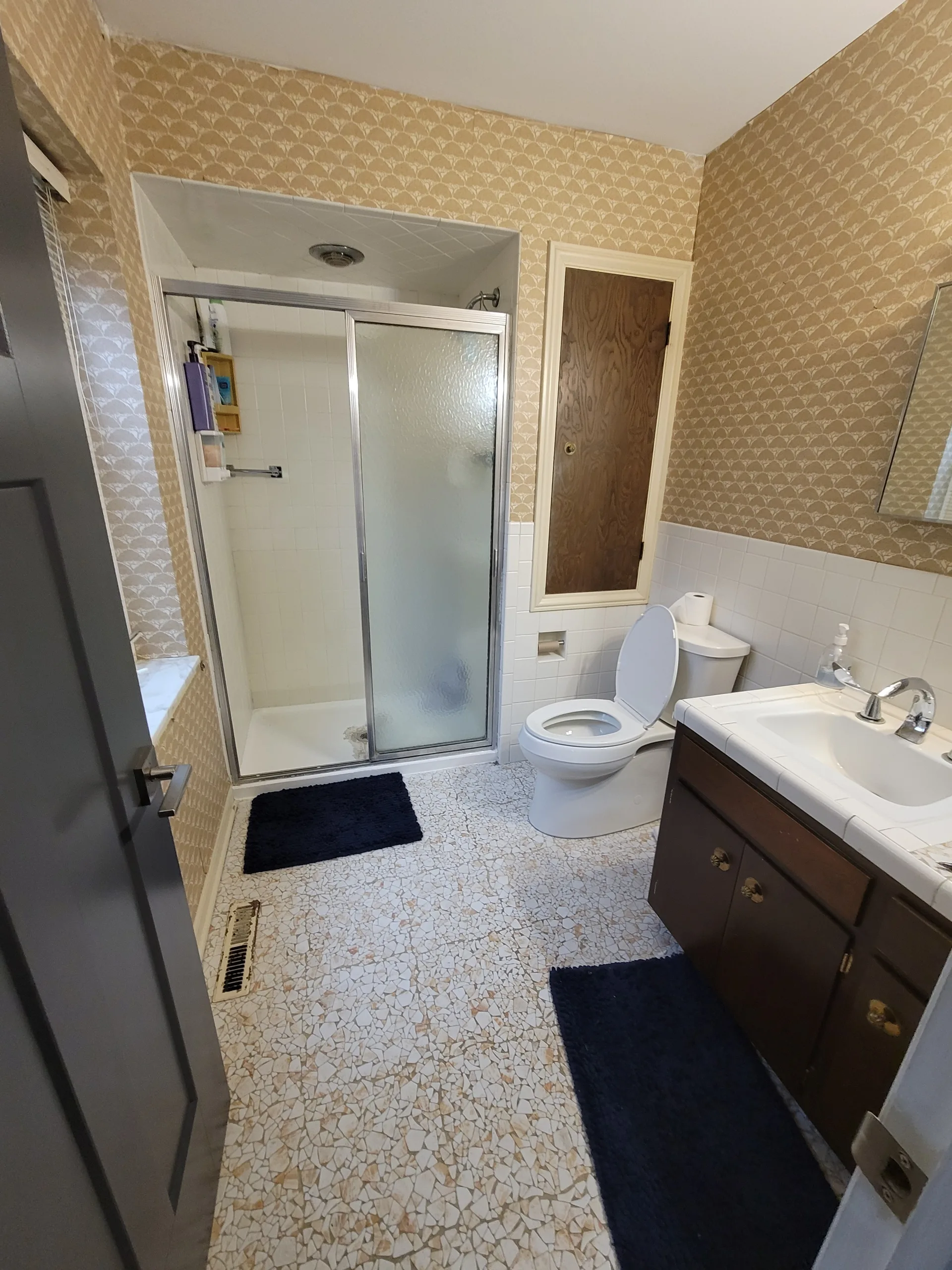 The original bathroom in this Evanston home was outdated and felt dark due to its brown-toned wall tiles and heavy wood vanity. The fixtures and lighting were no longer functional for a modern home, and the overall layout lacked the storage space needed by the homeowners. A complete gut renovation was required to update the plumbing and electrical systems and refresh the room’s appearance.