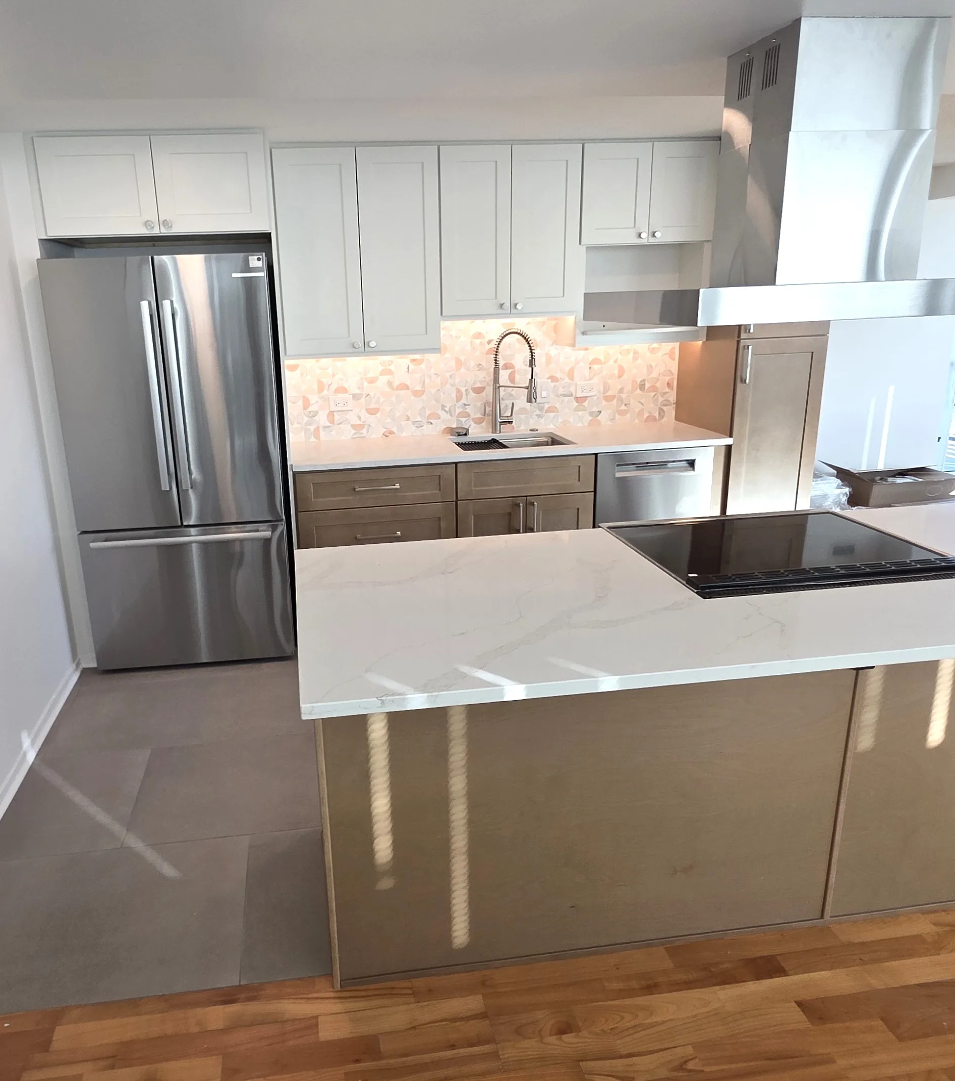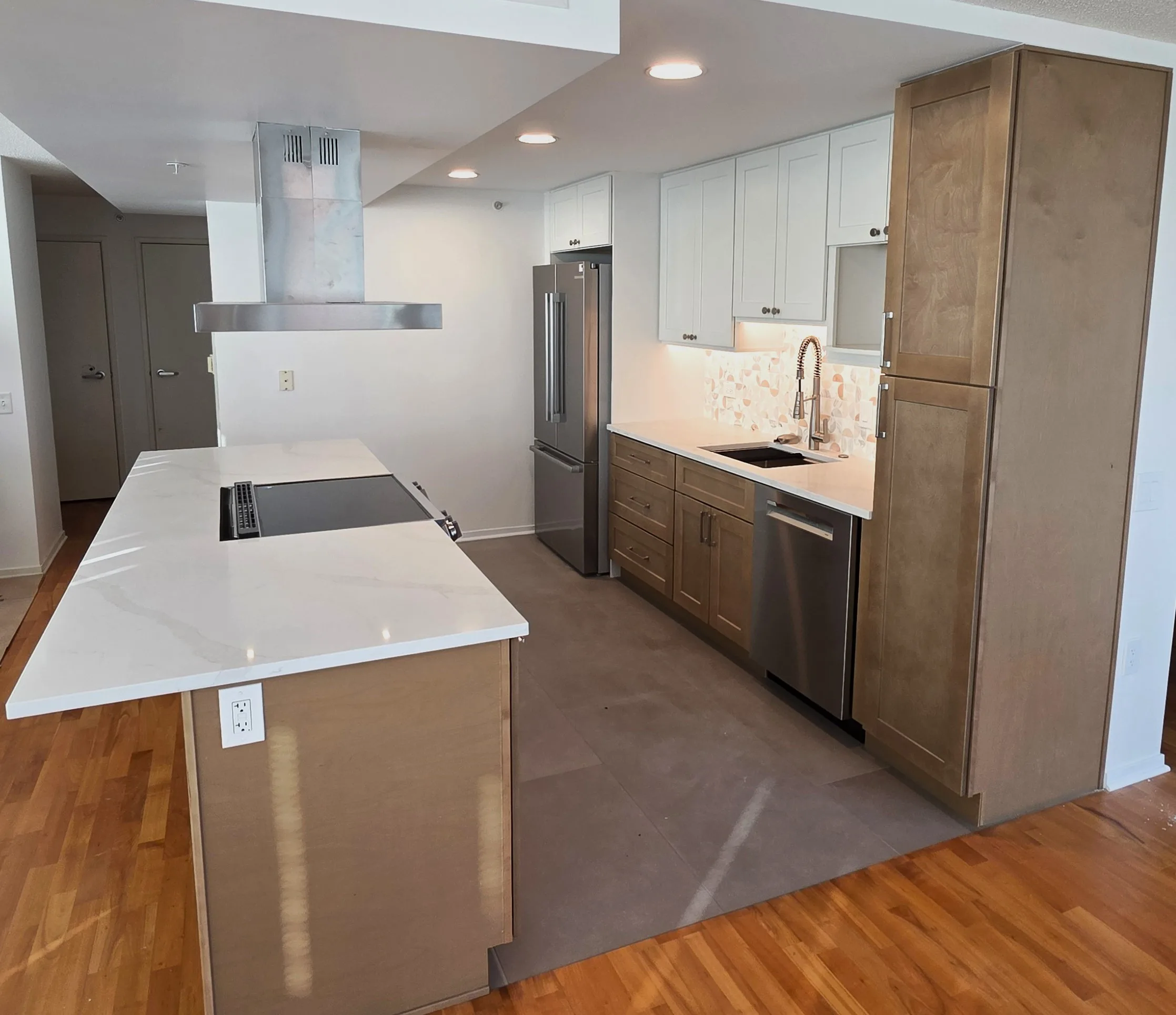 Maya Construction Group, led by owners Udi Yeger and Ofer Gliksman, managed this project to create a more functional and modern kitchen. We updated the footprint to improve flow and replaced all old materials with high-quality finishes. Our team coordinated with the building management to ensure the renovation met all HOA guidelines and building requirements while staying on schedule.